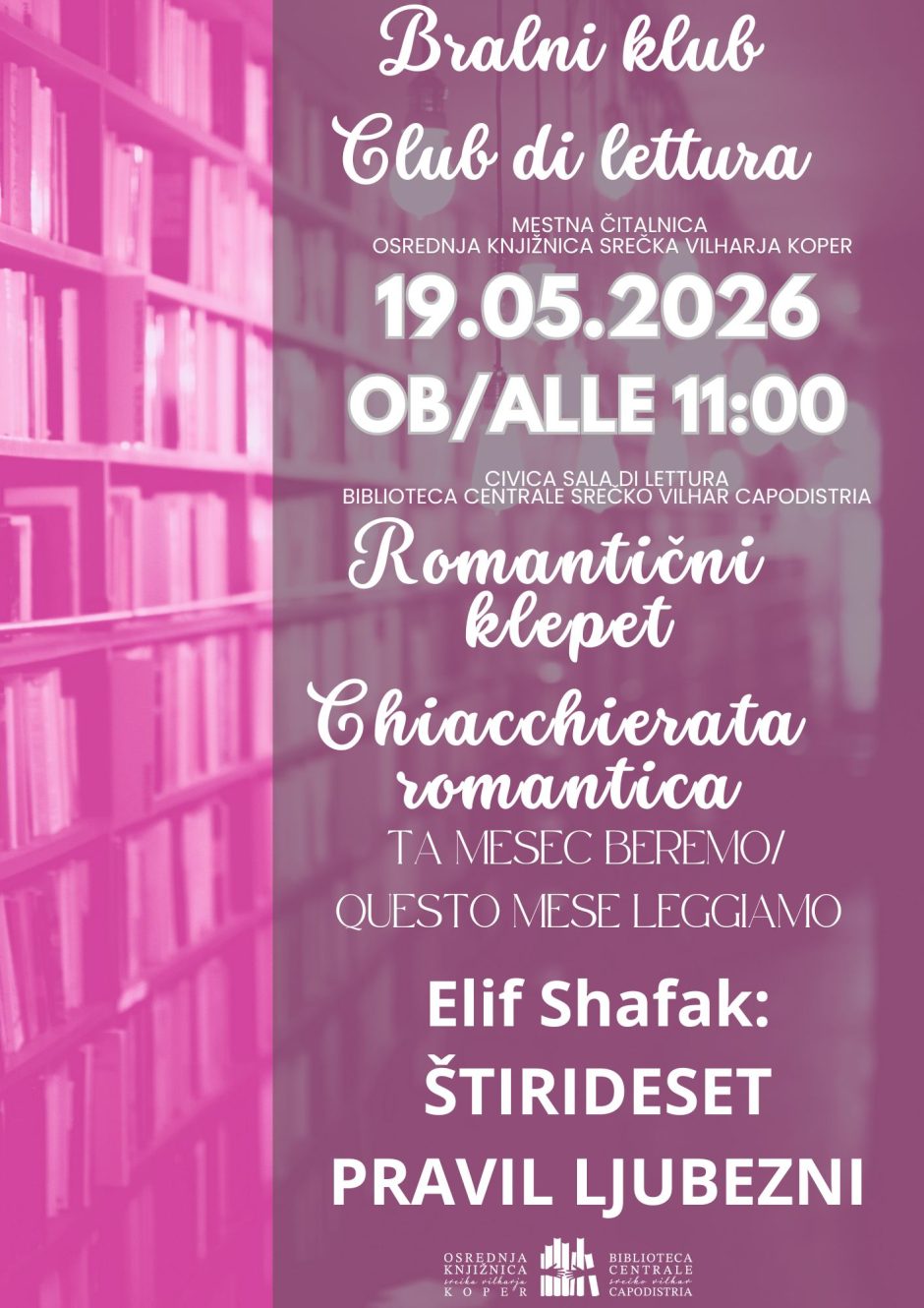 Zato vas vabiva na novo srečanje bralnega kluba Romantični klepet, kjer bomo skupaj ugotavljali, ali ljubezen res premika gore … ali pa vsaj naš urnik 😄